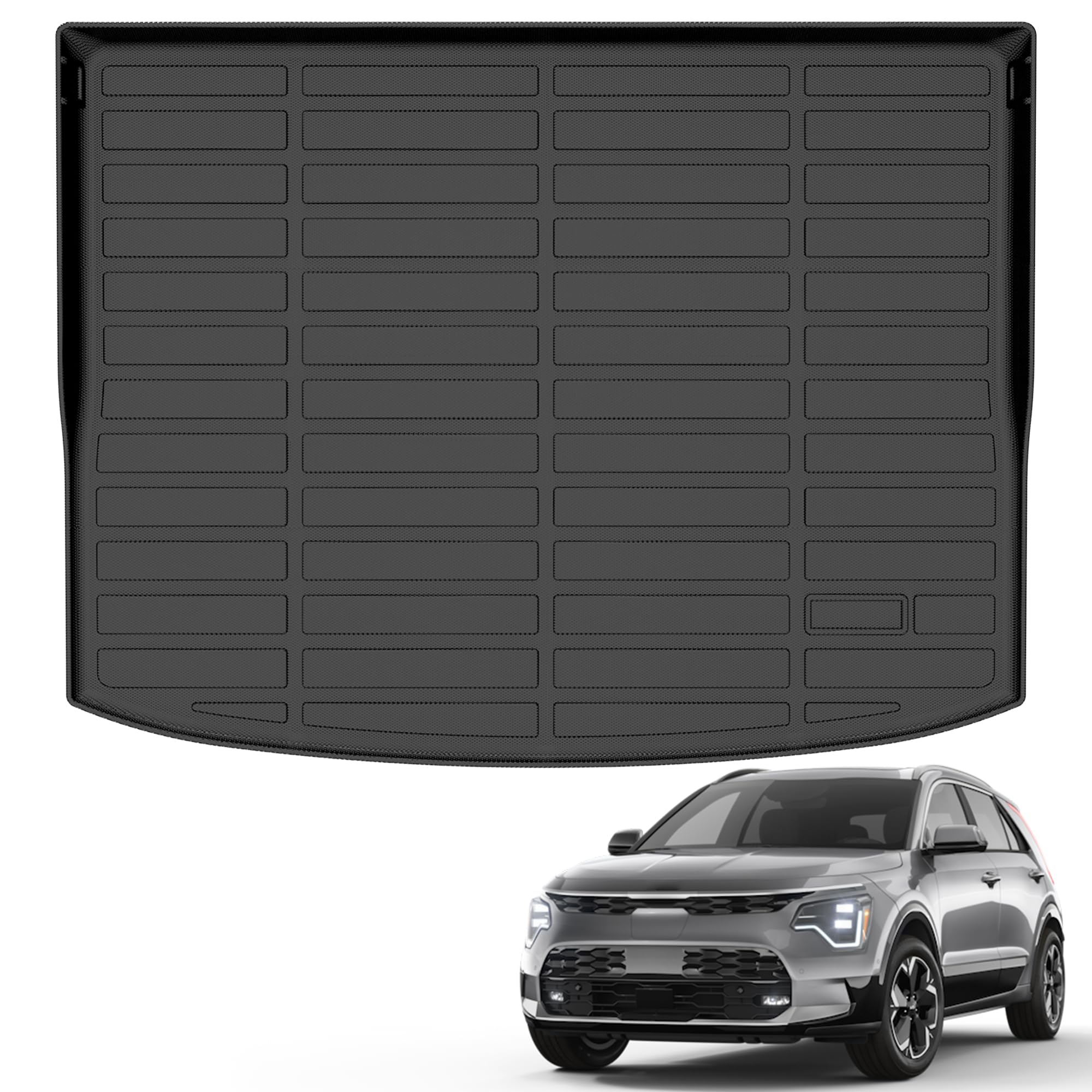 FITS LIKE A GLOVE: Auxko cargo mat for kia NIRO EV not for phev 2023 2024 2025 are high-precision laser measured, meaning our custom fit will offer optimal coverage and look as if the mats came with your kia NIRO EV 2023 2024 2025. Auxko incorporates a specially designed retention system and non-slip nibs on the mats to keep them locked in place.