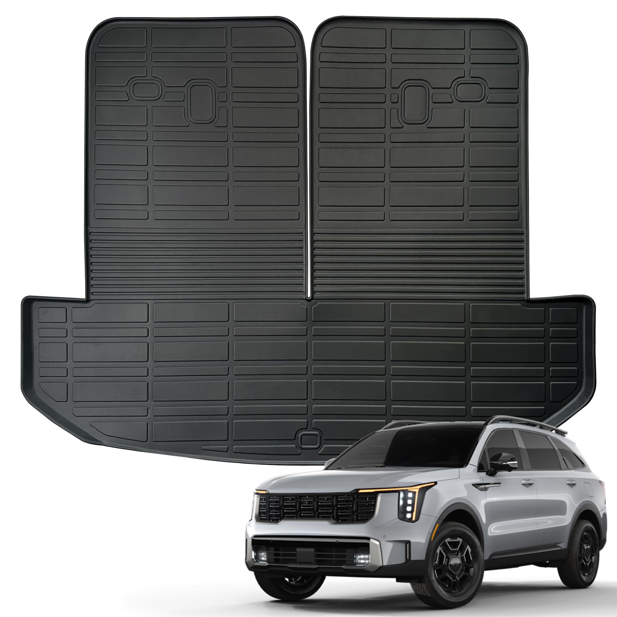 Auxko All Weather Cargo Mat & Back Seat Protector Fit for Kia Sorento(Include Hybrid & PHEV) 2021-2025 TPE Rubber Trunk Liner Accessory Odorless Anti-Slip Black