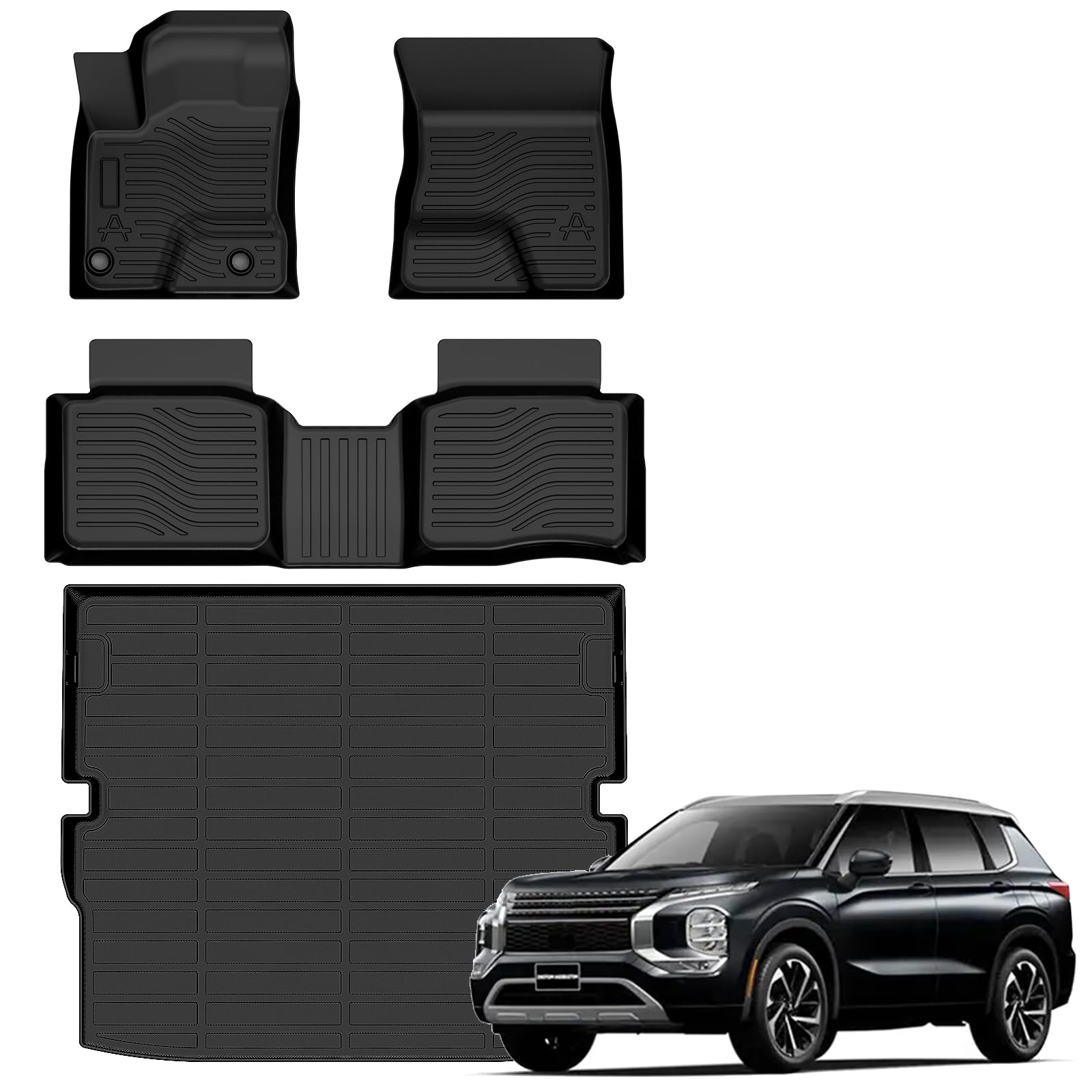 Auxko All Weather Floor Mats Cargo Mat for Mitsubishi Outlander PHEV 2025 2024 2023 TPE Liners Accessories Guard Odorless Anti-Slip Floor Liners & Trunk Liner