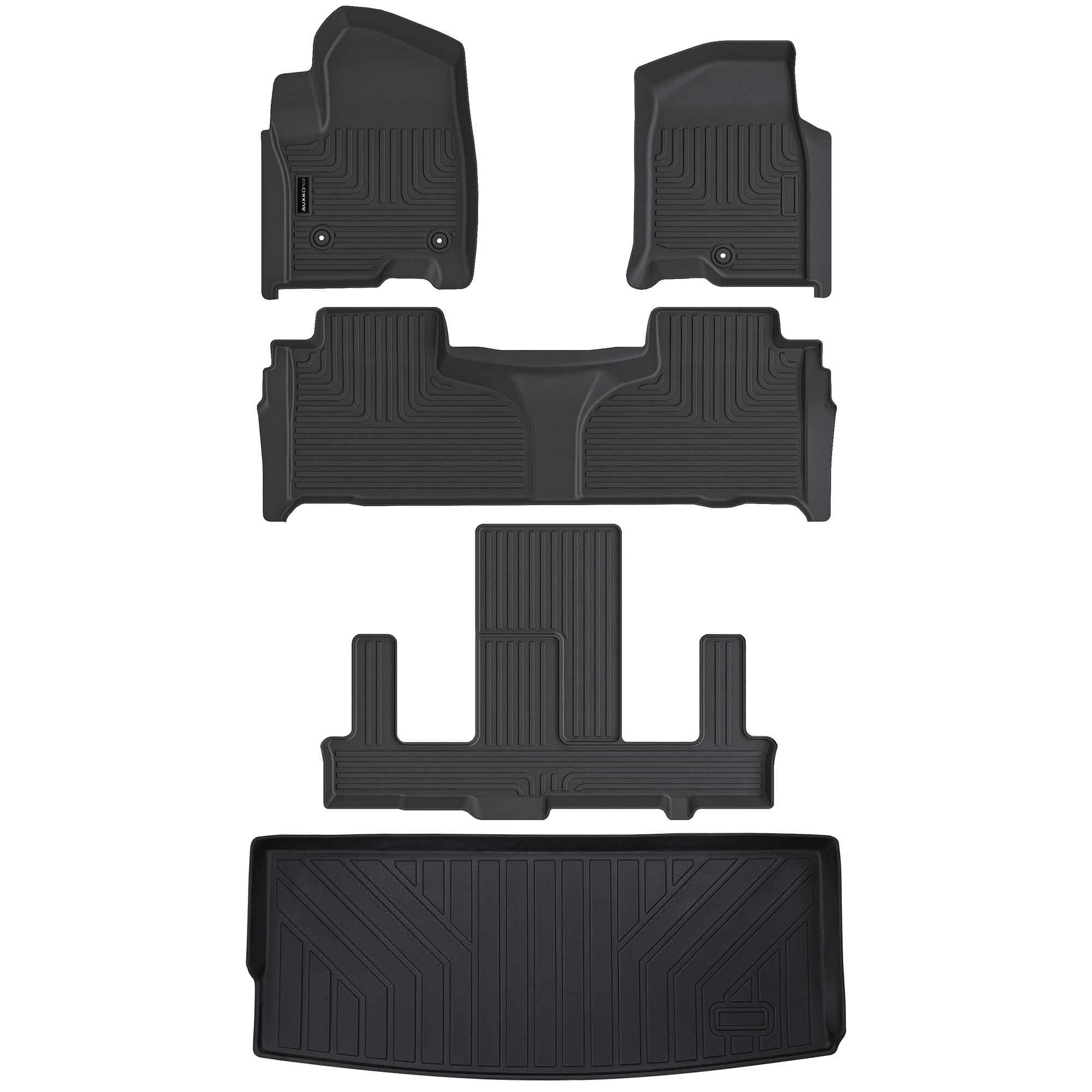 MOST APPROPRIATE MATERIAL:Auxko accessories mat for Chevrolet Tahoe & GMC Yukon(Not XL) 7 Seat 2021-2025 are constructed from TPE (thermoplastic elastomer), Free of both latex and PVC, 100-percent recyclable, Odorless. Auxko mats for Chevy Tahoe & GMC Yukon(Not XL) 7 Seat 2021-2024 are both soft and durable. More importantly, they'll hold up in extreme weather conditions, so you don't have to worry about cracking, curling, or the mats breaking down