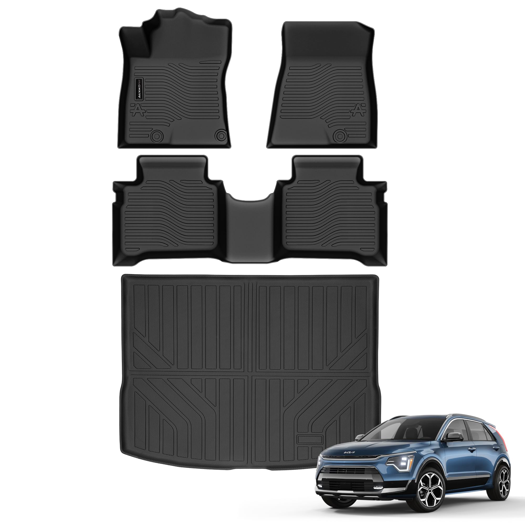 Auxko All Weather Floor Mats Cargo Mat Fit for Kia NIRO Hybrid 2025 2024 2023 (Not for PHEV or EV) TPE Floor Liner Trunk Mat NIRO Accessories All Season Odorless Anti-Slip Black