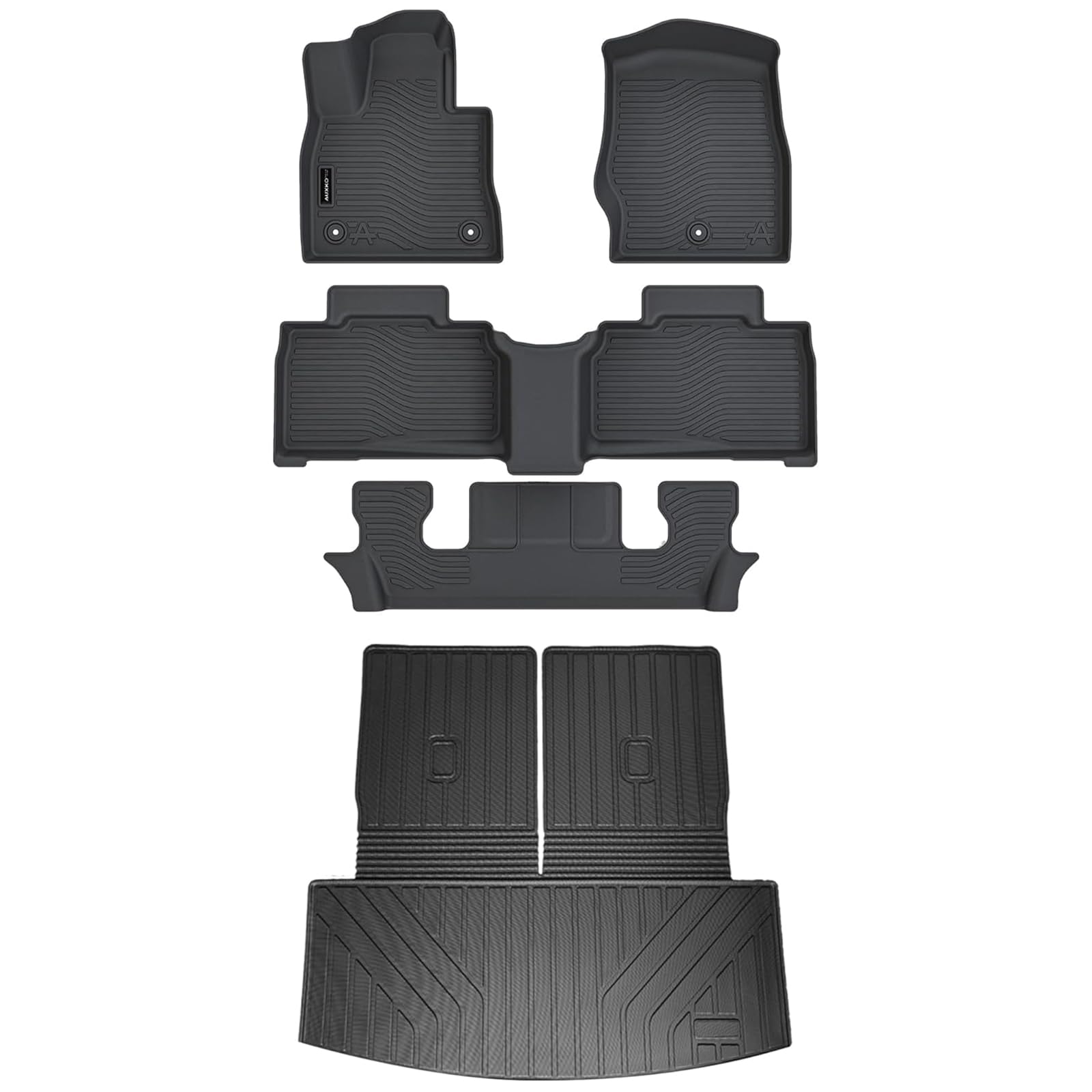 Auxko All Weather Floor Mat & Cargo Mat with Back Seat Mat Fit for Ford Explorer 6 Seat 2025 2024 2023 2022 2021 2020 TPE Floor Liner Trunk Mat Accessories All Season Odorless Anti-Slip Black