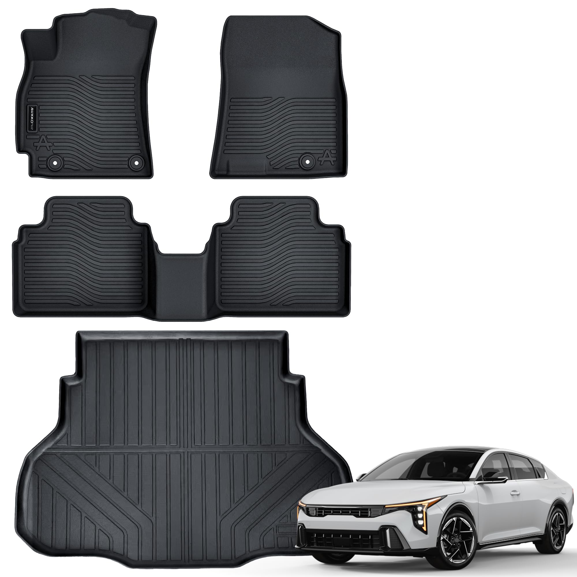 FITS LIKE A GLOVE: Auxko floor mats cargo mat for Kia k4 sedan 2025 are high-precision laser measured, meaning our custom fit will offer optimal coverage and look as if the mats came with your kia k4 sedan 202 5. Auxko incorporates a specially designed retention system and non-slip nibs on the mats to keep them locked in place.