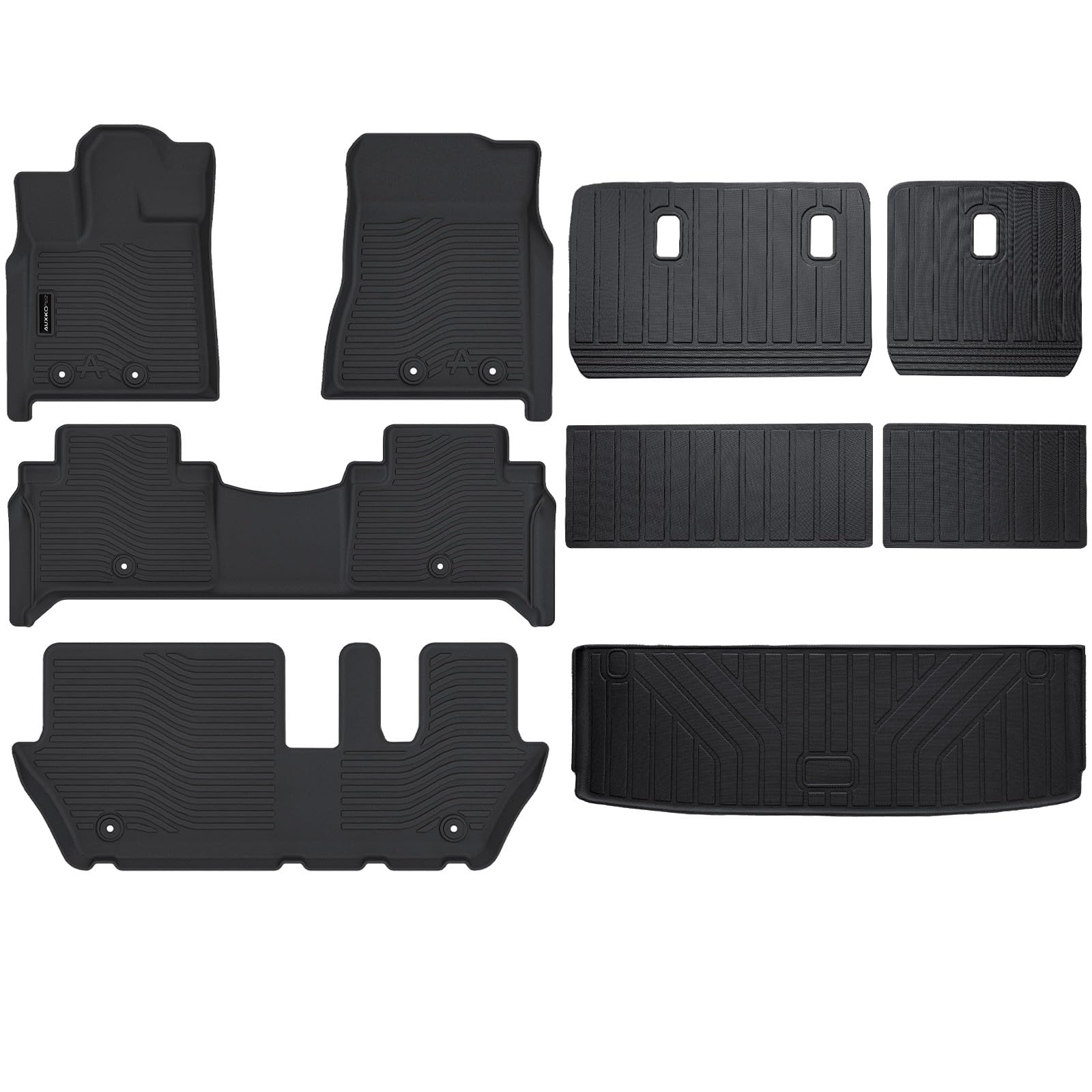 Auxko All Weather Floor Mats Cargo Mat with Backrest Mat Fit for 2025 Nissan Armada 8 Seats TPE Liners Accessories Guard Odorless Anti-Slip Floor & Cargo Liners for Nissan Armada 2nd Row Bench Seat