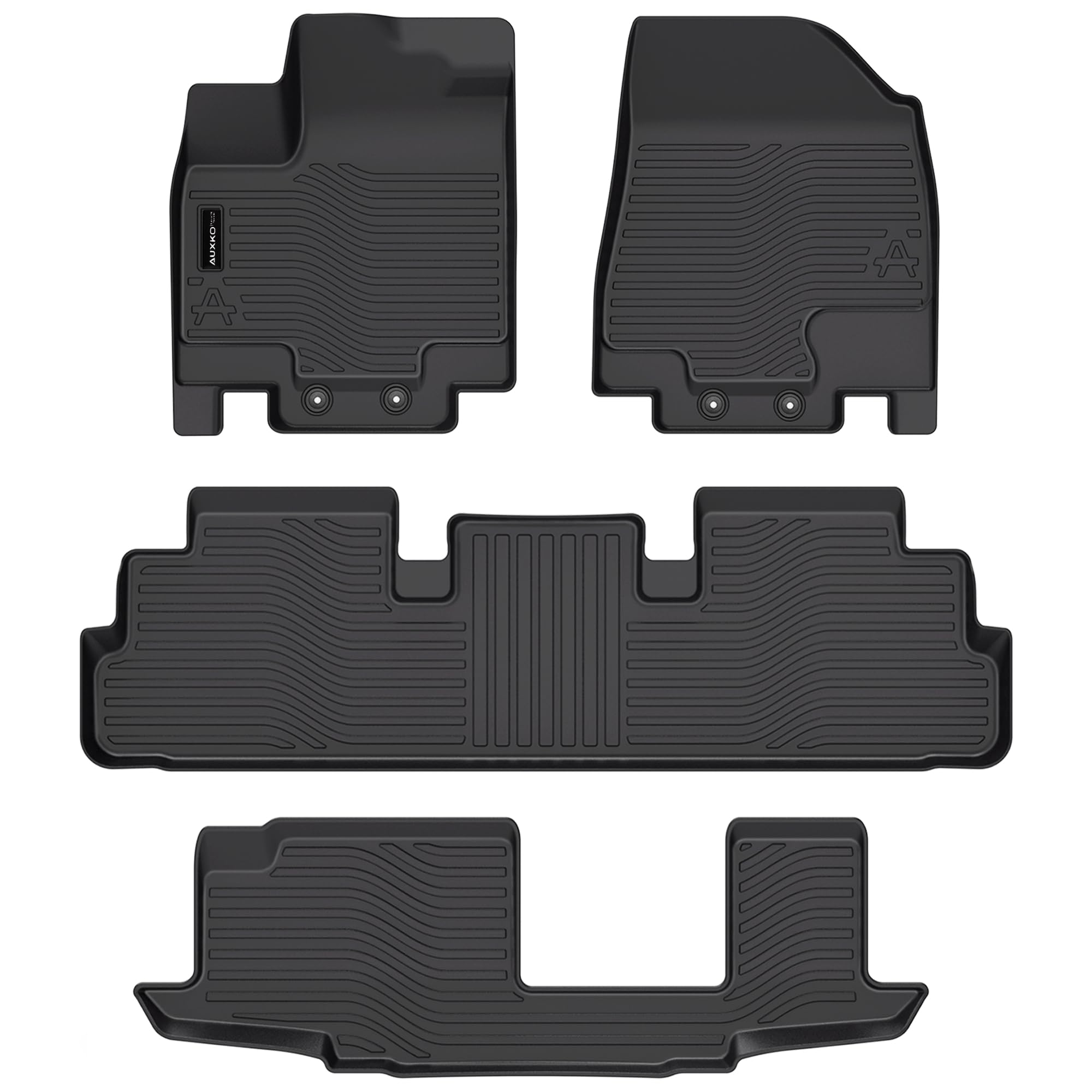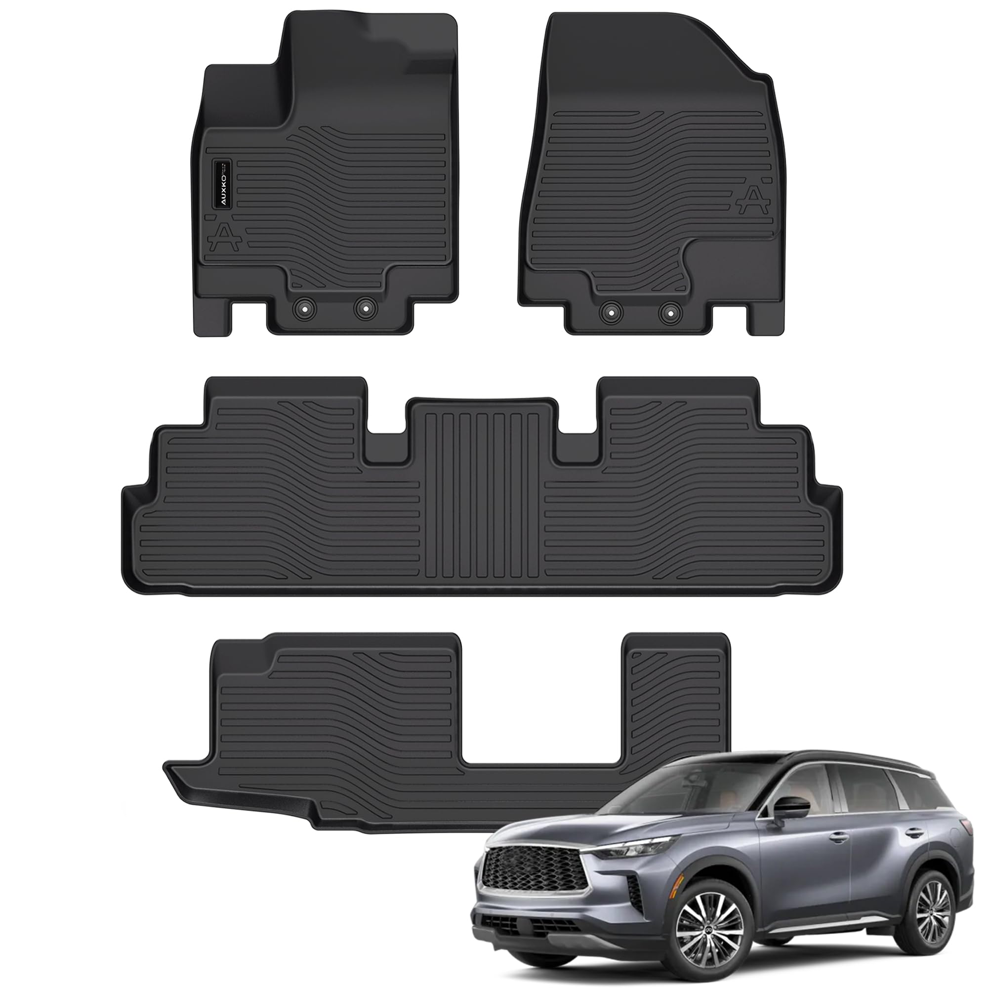Auxko All Weather Floor Mats Fit for Nissan Pathfinder 2022-2025(8 Seat) / Infiniti QX60 2022-2025 (7 Seat) TPE Rubber Liners Set All Season Guard Odorless Anti-Slip Floor Mats