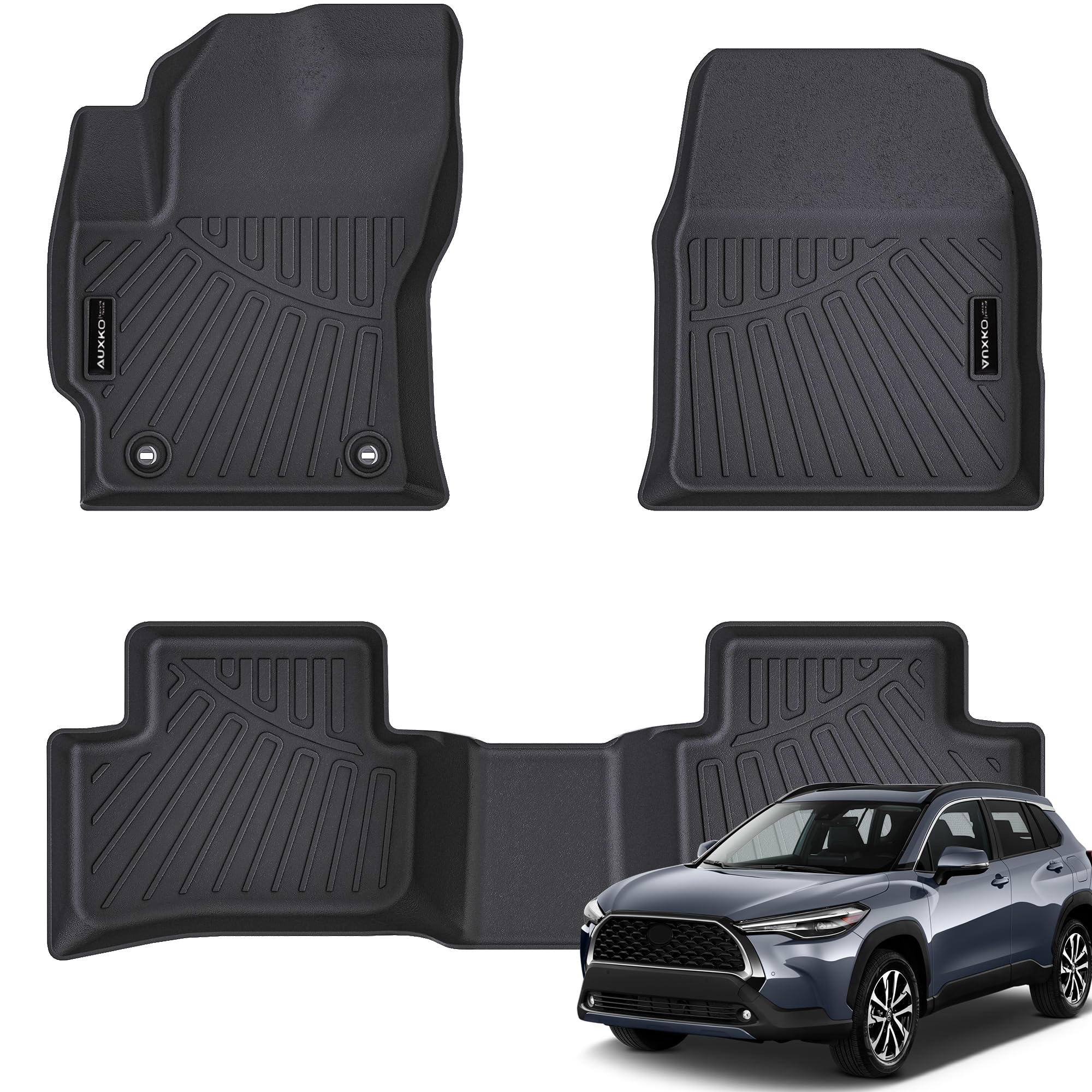 FITS LIKE A GLOVE: Auxko floor mats for toyota corolla cross awd gas 2022 2023 2024 2025 are high-precision laser measured, meaning our custom fit will offer optimal coverage and look as if the mats came with your toyota corolla cross awd gas 2022 2023 2024 2025. Auxko incorporates a specially designed retention system and non-slip nibs on the mats to keep them locked in place.
