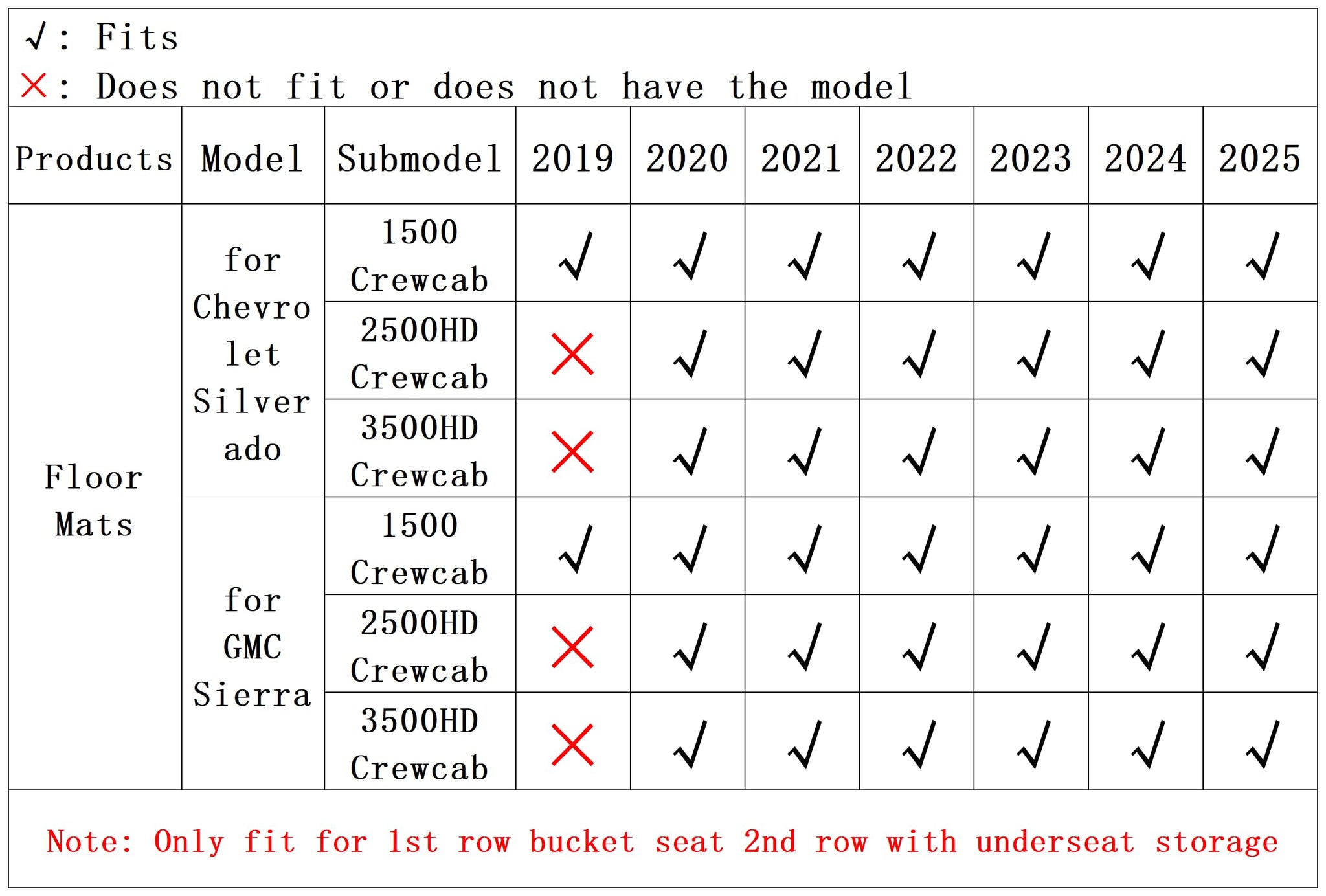 AUXKO All Weather Floor Mats Fit for 2019-2026 Chevrolet Silverado 1500 & GMC Sierra 1500 & 2020-2026 Chevy Silverado/GMC Sierra 2500HD/3500HD Crewcab with Front Bucket Seat Rear Underseat Storage