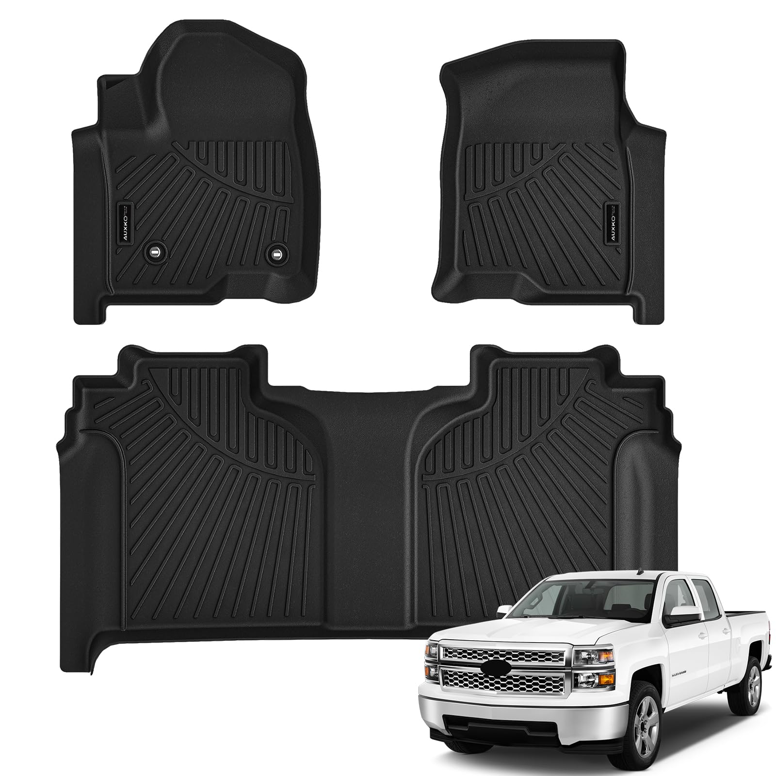 FITS LIKE A GLOVE: Auxko floor mats for 2019-2026 Chevrolet Silverado & GMC sierra 1500, for 2020-2026 Chevrolet Silverado & GMC sierra 2500HD/3500HD crewcab are high-precision laser measured, meaning our custom fit will offer optimal coverage and look as if the mats came with your Silverado 1500 crewcab 2019 2020 2021 2022 2023 2024 2025 2026. Auxko incorporates a specially designed retention system and non-slip nibs on the mats to keep them locked in place.