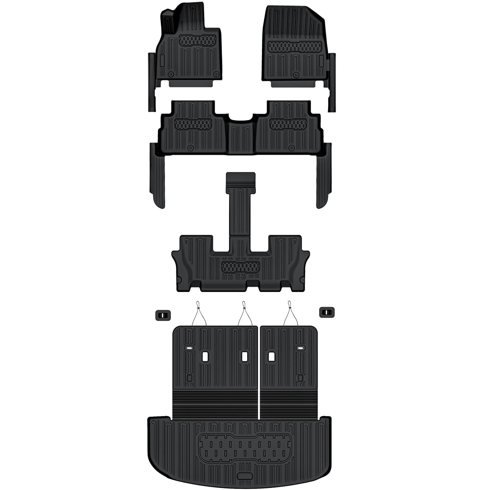 EASY TO CLEAN: A garden hose gun can easily cleaning the floor liners cargo mat with backrest mat compatible with kia telluride 7&8 seats 2020-202 5. Also a wet cloth and some running water can do. Routine maintenance are really easy.