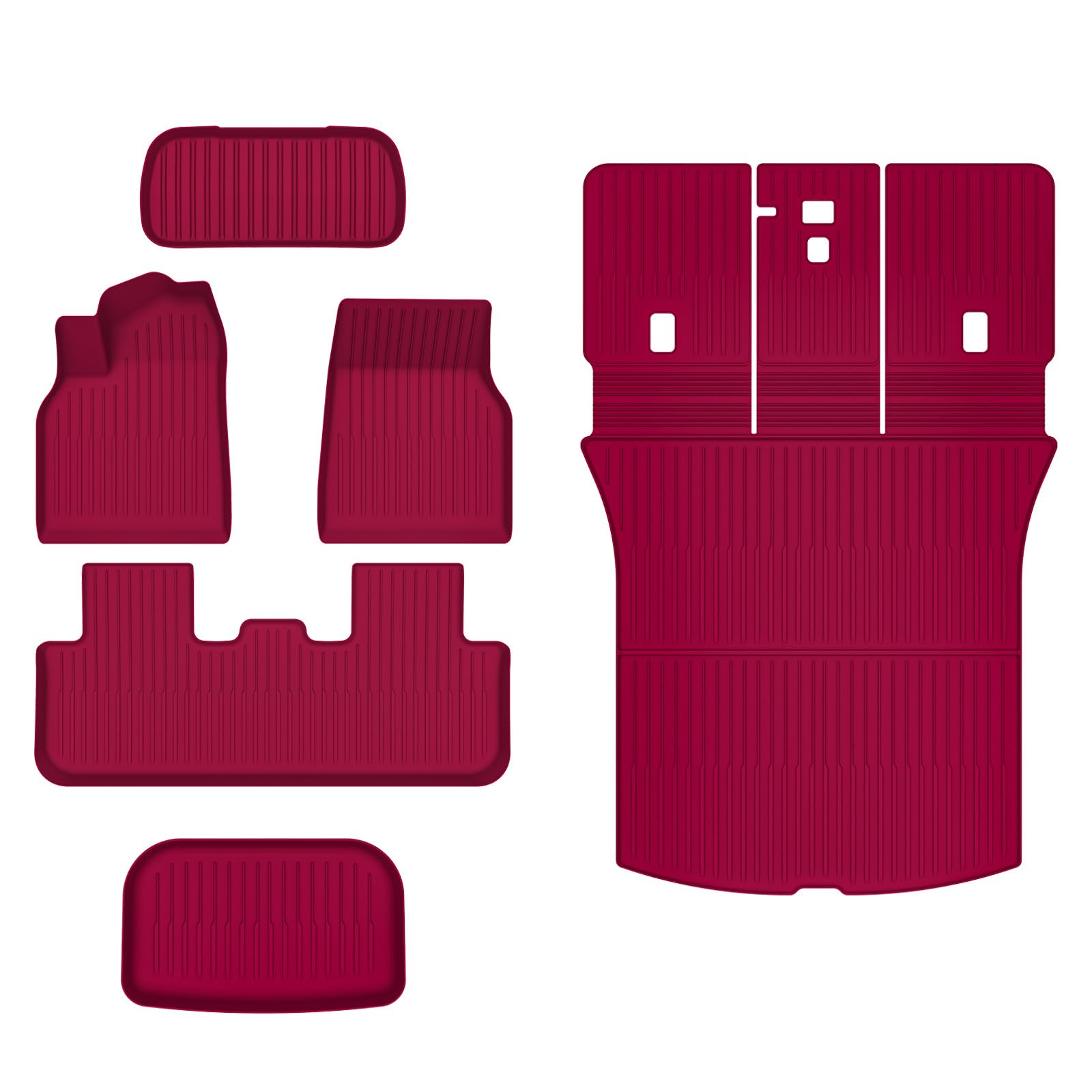 AUXKO All Weather Floor Mats for 2025 2026 New Tesla Model Y Juniper Cargo Mat with Backrest Mat & Front Trunk Liner & Rear Cargo Mat Car Full Set Accessories Guard Odorless Anti-Slip TPE Mats Red
