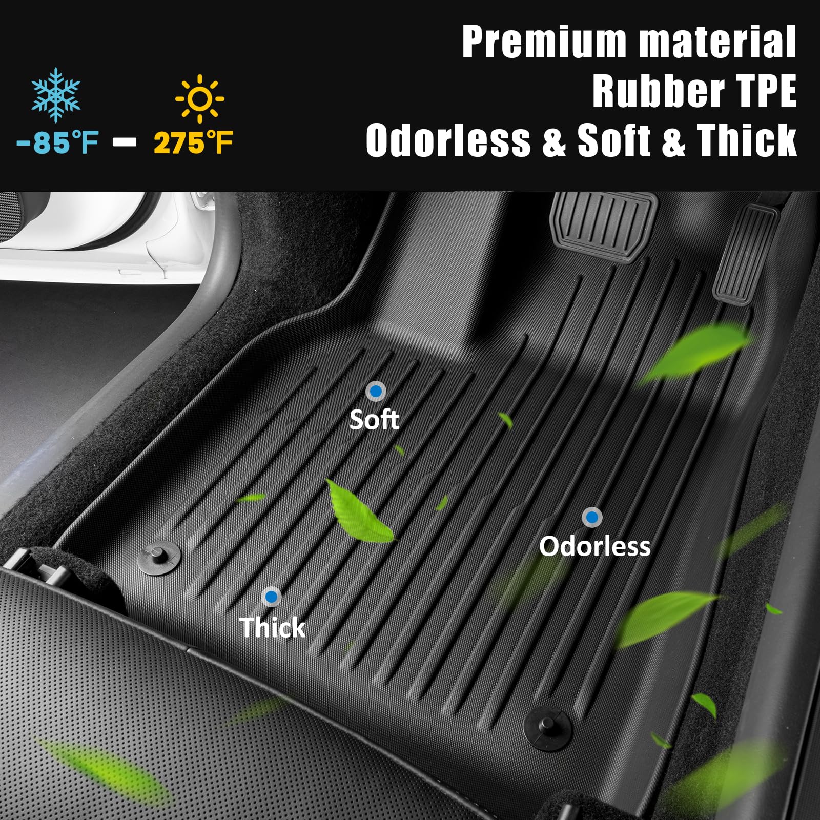 MOST APPROPRIATE MATERIAL: Auxko for Tesla Model Y Juniper 2026 2025/Tesla New Model Y accessories floor mats cargo mat with backrest mat constructed from TPE (thermoplastic elastomer), Free of both latex and PVC, 100-percent recyclable, Odorless. Auxko mats liner accessories for Tesla Model Y Juinper are both soft and durable. More importantly, they'll hold up in extreme weather conditions, so you don't have to worry about cracking, curling, or the mats breaking down.
