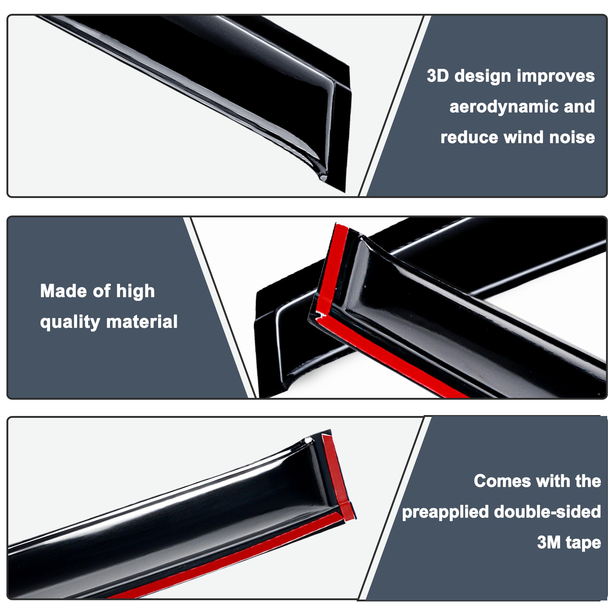 - VERSATILE FUNCTIONALITY: Auxko rain guard vent visors can reduce wind noise, de-mist windows, circulate fresh air into the car and minimize heat build up. Odor from pets, food crumbs, smoke, and sports gear quickly destroys the fresh smell. Window guards naturally ventilate fresh air keeping you dry in the rain