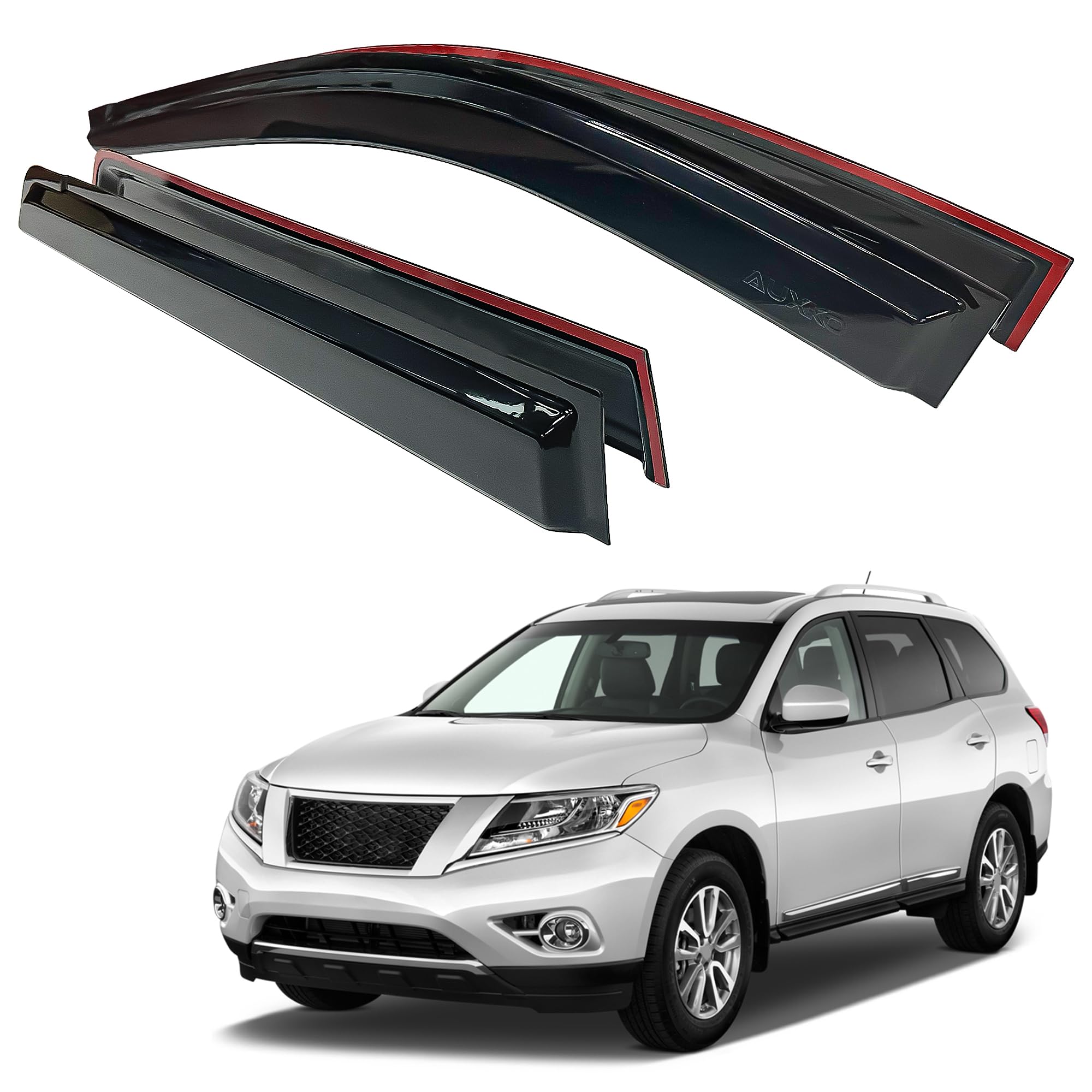 - Fitment: This Auxko window rain guard wind deflectors is only fit for Nissan Pathfinder S SV SL Platinum 2022 2023 2024 2025. If you find scratches or bubbles on the surface of the product, please check whether there is a layer of plastic protective film on the surface. If there is, please tear it off before using it. If not, please contact us for processing.