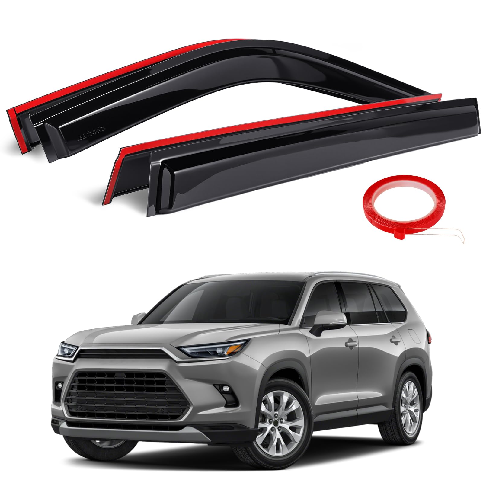 AUXKO Rain Guards Window Visors for Toyota Grand Highlander 2024 2025 - Updated with 3M Tape Tape-On Side Window Wind Deflectors & Visors Accessories for Toyota Grand Highlander Car Windows Black